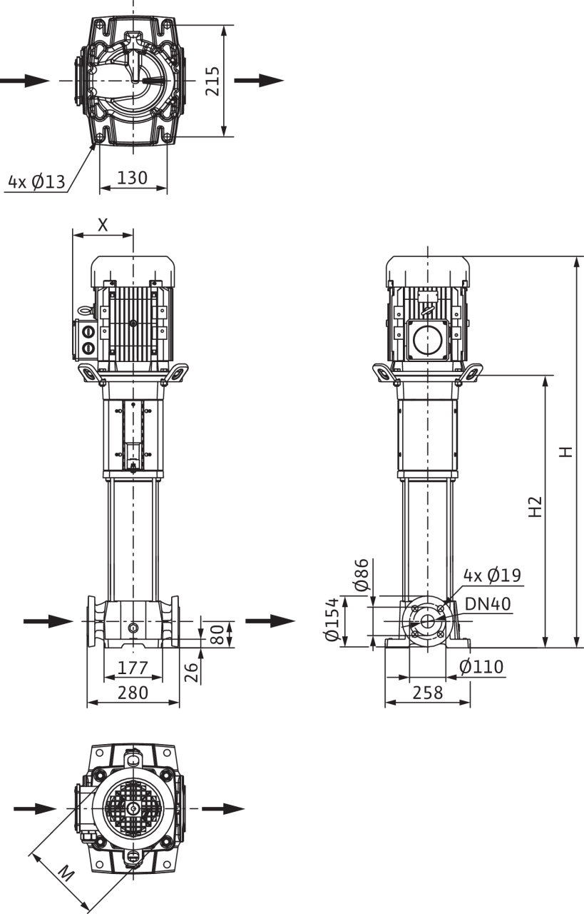 | Номинальный внутренний диаметр фланца (с напорной стороны) | DN 40 |