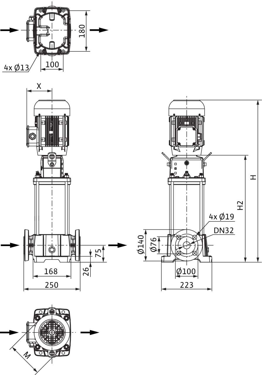 | Номинальный внутренний диаметр фланца (с напорной стороны) | DN 32 |