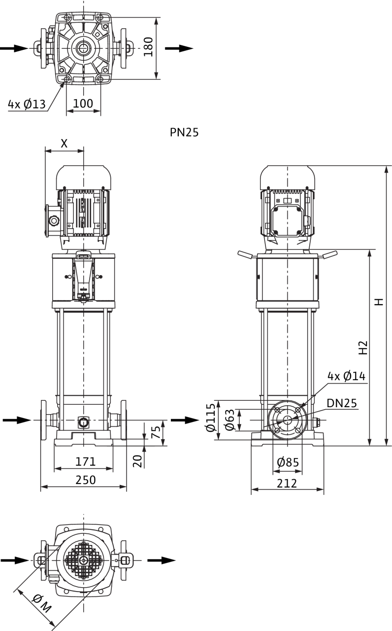 Номинальный внутренний диаметр фланца (с напорной стороны)DN 25