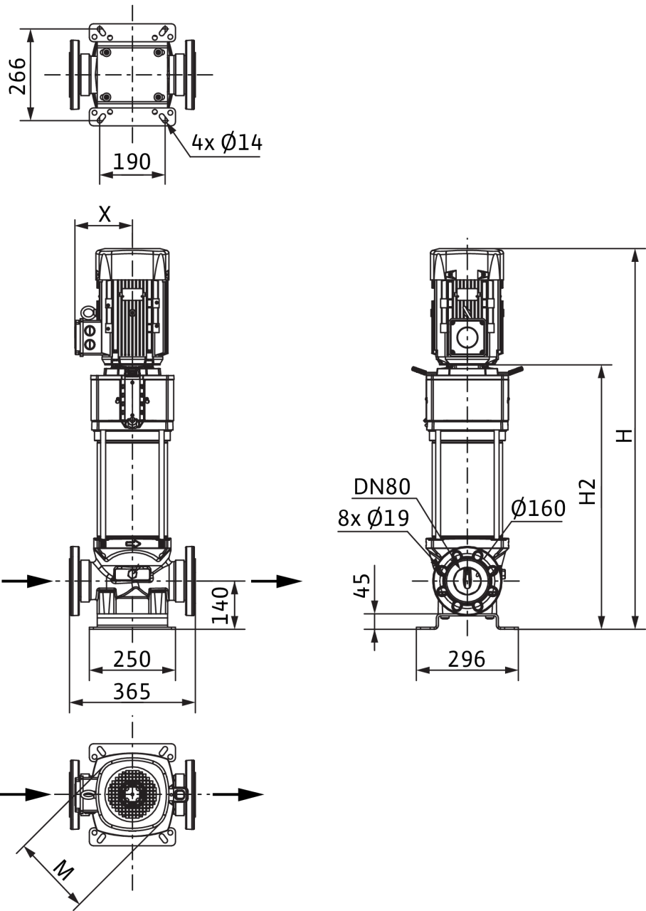 Номинальный внутренний диаметр фланца (на стороне всасывания)DN 80