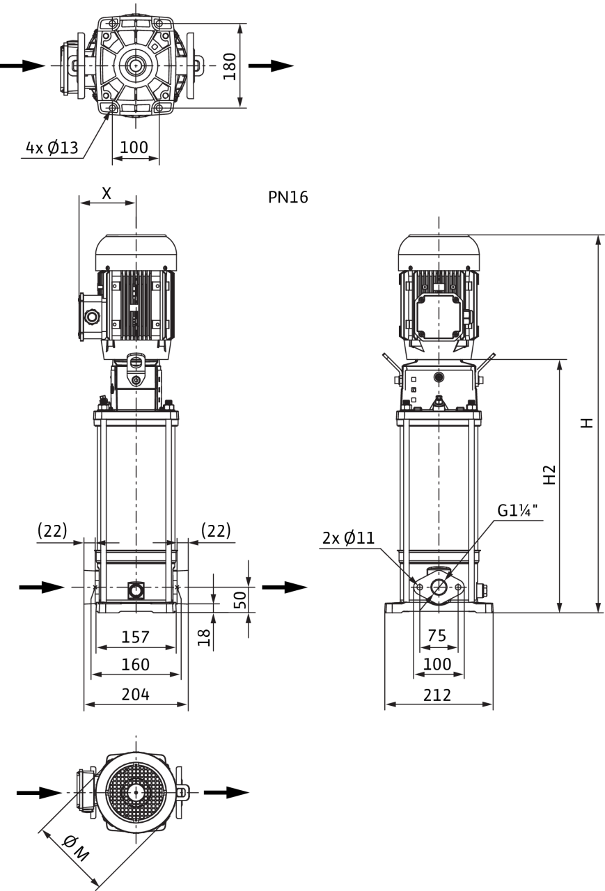 Уровень номинального давления (с напорной стороны) PNPN 16