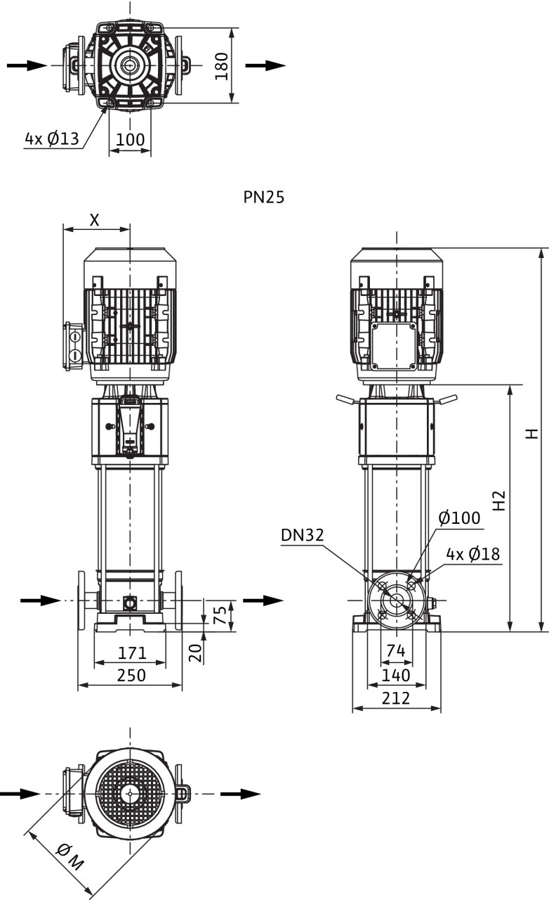 Номинальный внутренний диаметр фланца (на стороне всасывания)DN 32