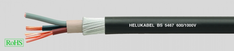Характеристики — HELUKABEL BS 5467, силовой кабель 0,6/1кВ, армированный, PVC-оболочка
