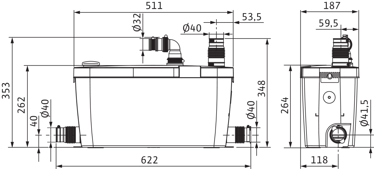 Готовая к подключению автоматическая напорная установка для отвода сточных вод с низким уровнем шума согласно стандарту EN 12050-2 со всеми необходимыми переключающими и управляющими устройствами.