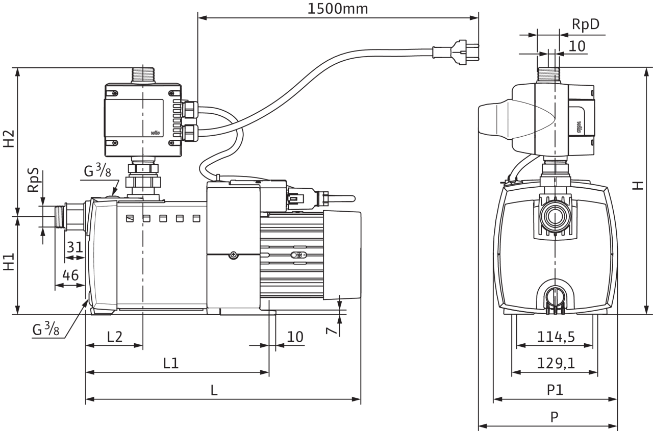 Многоступенчатый горизонтальный центробежный насос с сухим ротором, самовсасывающий, с непосредственно прифланцованным электродвигателем и автоматической системой управления насосом HiControl 1. Не требующее техобслуживания скользящее торцовое уплотнение в месте прохода вала.