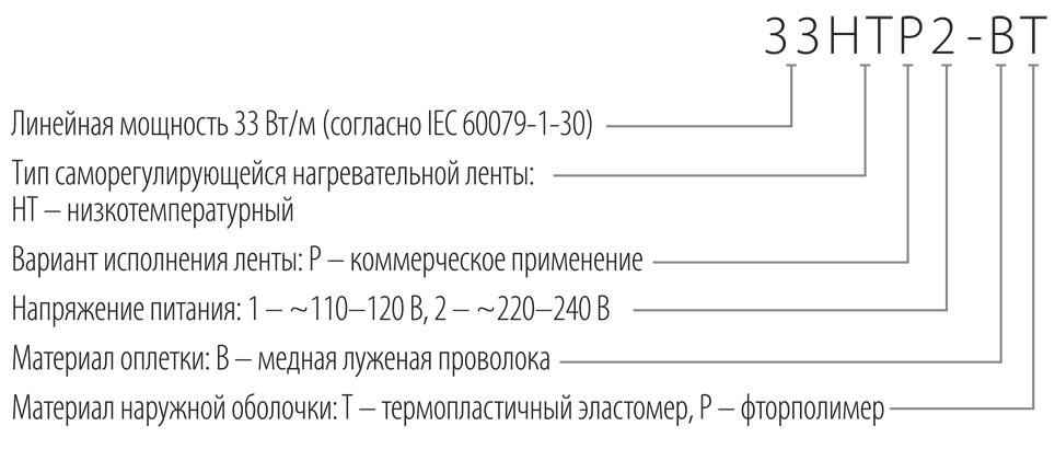 Саморегулирующаяся электрическая нагрева-тельная лента для защиты от замерзания или поддержания заданной температуры трубопроводов и емкостей, в том числе во взрывоопасных зонах.