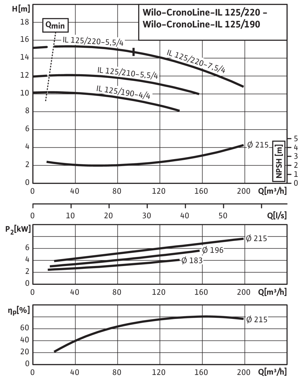 Насос с макс. диаметром рабочего колеса для определения MEIIL125/220-7,5/4