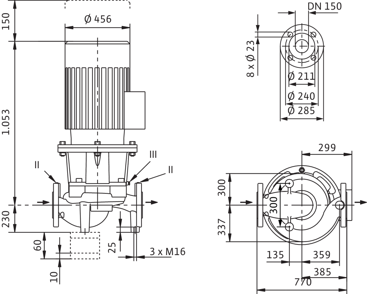 II отверстие для измерения давления R1/8; III удаление воздуха R1/8