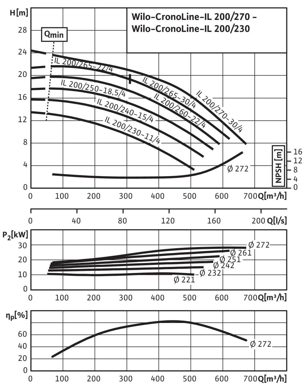 Насос с макс. диаметром рабочего колеса для определения MEIIL200/270-30/4