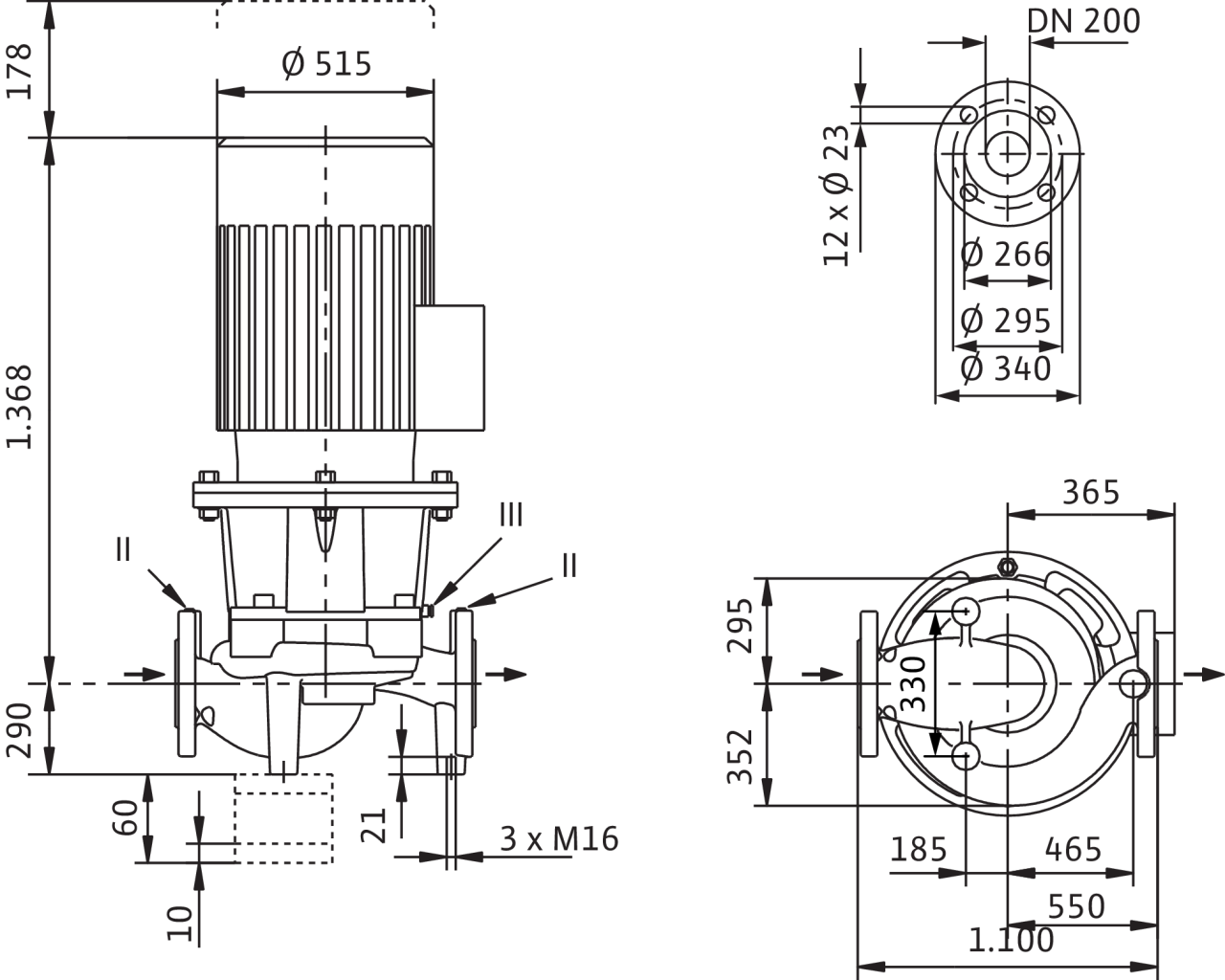 II отверстие для измерения давления R1/8; III удаление воздуха R1/8