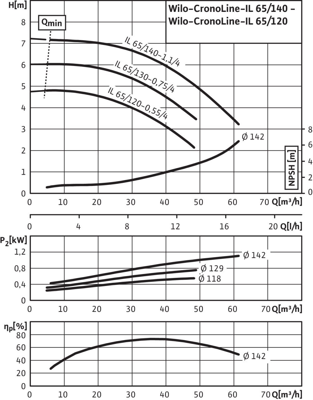 Насос с макс. диаметром рабочего колеса для определения MEIIL65/140-1,1/4