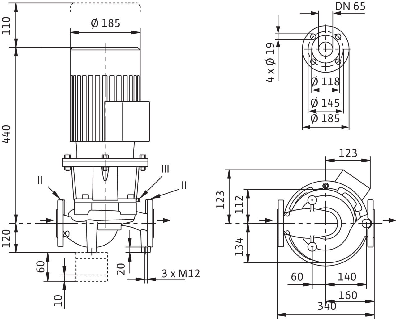 Одноступенчатый центробежный насос с сухим ротором линейного типа, предназначенный для установки в трубах или на фундаменте. Консоль предоставляется за отдельную плату. Блочное исполнение с низким уровнем шума и вибрации с промежуточным корпусом и неподвижно присоединенным унифицированным (стандартным) электродвигателем с фланцевым креплением. С не зависящим от направления вращения скользящим торцовым уплотнением в кожухе с принудительным охлаждением и снижающим кавитацию рабочим колесом. Фланцы имеют отверстия R 1/8 для измерения давления.