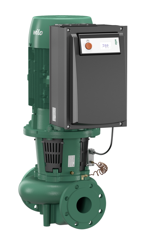 Центробежный насос с сухим ротором линейного типа для установки в трубах или на фундаменте со встроенным частотным преобразователем для электронного регулирования параметров, в том числе постоянного или переменного перепада давления (Δp-c/Δp-v).