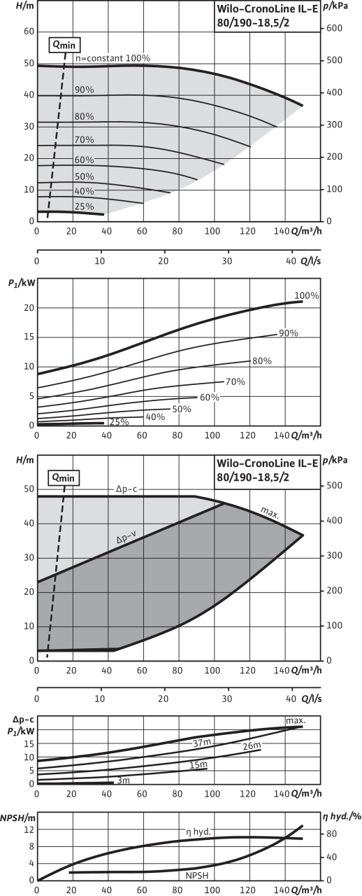• Интерфейсы: управляющий вход «Выкл. по приоритету», «Внешняя смена насосов» (действует только в режиме работы сдвоенного насоса), аналоговый вход 0–10 В, 2–10 В, 0–20 мА, 4–20 мА для ​режима управления (DDC) или дистанционного регулирования заданных значений, аналоговый вход 0–10 В, 2–10 В, 0–20 мА, 4–20 мА для сигнала текущего значения датчика давления, IR-интерфейс для беспроводной связи с устройством управления и сервисного обслуживания – IR-картой памяти/IR-монитором Wilo, разъем для IF-модуля Wilo для связи с автоматизированной системой управления зданием, настраиваемая беспотенциальная система оповещения о неисправностях, эксплуатации и готовности, интерфейс для связи со сдвоенными насосами