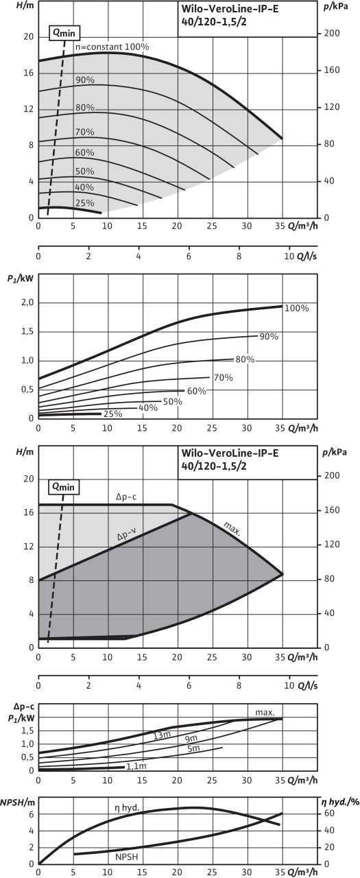 • Интерфейсы: Управляющий вход «Выкл. по приоритету», «Внешняя смена насосов» (действует только в режиме работы сдвоенного насоса), аналоговый вход 0–10 В, 2–10 В, 0–20 мА, 4–20 мА для ​режима управления (DDC) или дистанционного регулирования заданных значений, аналоговый вход 0–10 В, 2–10 В, 0–20 мА, 4–20 мА для передачи сигнала фактического значения датчика давления, инфракрасный интерфейс для беспроводной связи с устройством управления и сервисного обслуживания – IR-картой памяти/IR-монитором Wilo, разъем для IF-модуля Wilo Modbus, BACnet, CAN, PLR, LON для связи с автоматизированной системой управления зданием, настраиваемая беспотенциальная система оповещения о неисправностях, эксплуатации и готовности, интерфейс для связи со сдвоенными насосами;