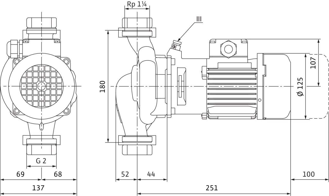 Фланцы имеют отверстия R 1/8 для измерения давления. На корпус насоса и промежуточный корпус нанесено катафорезное покрытие.
