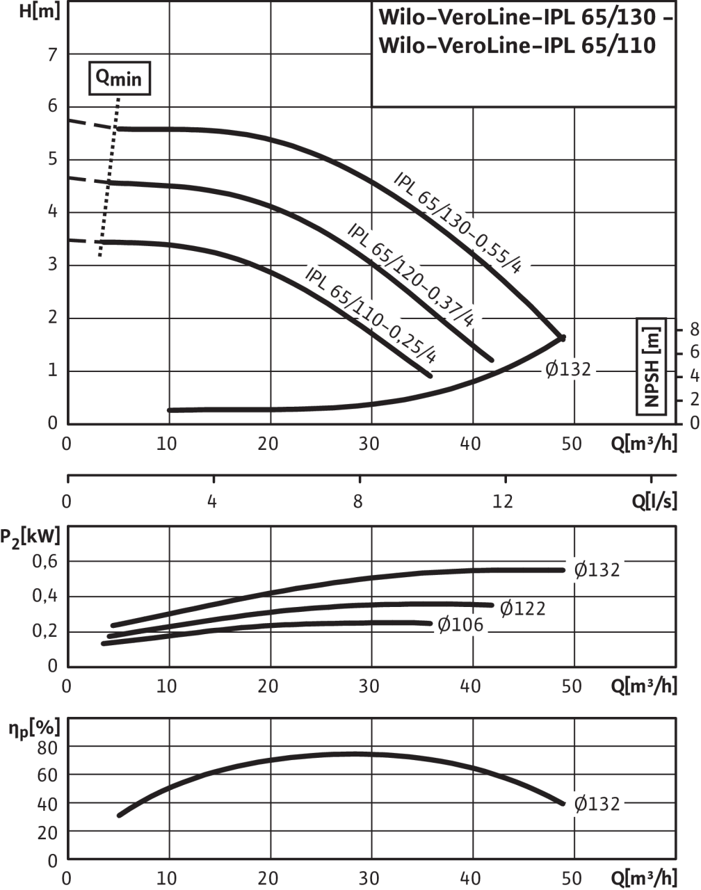 Насос с макс. диаметром рабочего колеса для определения MEIIPL65/130-0,55/4