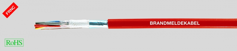 - Цвет оболочки — красный (RAL 3000) с надписью «BRANDMELDEKABEL» ( «Кабель пожарной сигнализации»)