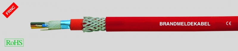 - Цвет оболочки — красный (RAL 3000) с надписью «BRANDMELDEKABEL» ( «Кабель пожарной сигнализации»)