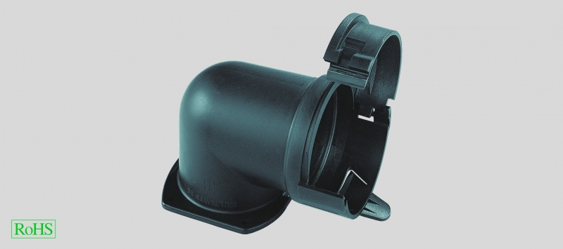One-piece flange connection, 90° angle. Suitable for parallel-coiled HELUcond Jumbo protection tubes.