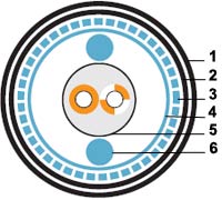 Промышленный кабель связи, разработанный для применения в рамках полевых шин на процессуальном уровне, совместим с шиной ProfiBus. В состав кабеля входит одна витая пара и два силовых элемента. Кабель заключен в экран из алюминиевой фольги и медной оплетки, защищен двойной оболочкой из огнестойкого ПВХ-компаунда и полиэтиленового компаунда.