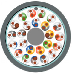 Кабель контроля и пожарной сигнализации для внутренней прокладки. Кабель состоит из сорока восьми проводников 20 AWG, свитых в пары, помещенных в общий экран из алюминиевой фольги и защищенных оболочкой из огнестойкого ПВХ.