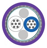 В состав кабеля входят одна витая пара и два силовых элемента. Кабель помещен в двойной экран из алюминиевой фольги и медной оплетки, защищен оболочкой из полиуретана и предназначен для эксплуатации в расширенном диапазоне температур.