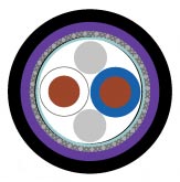 В состав кабеля входят одна витая пара и два силовых элемента. Кабель помещен в двойной экран из алюминиевой фольги и медной оплетки, защищен двойной оболочкой из огнестойкого ПВХ и полиэтиленового компаунда.