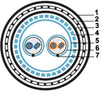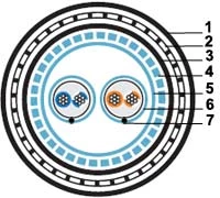 Кабель передачи данных, экранированный, 2 пары, индивидуально экранированные, многожильный, бронированный гидроизолирующей алюминиевой лентой, двойная оболочка. Применяется для приложений типа RS-422, подходит для внутренней и внешней прокладки