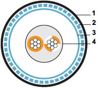 Внешняя оболочка: светостабилизированный огнестойкий ПВХ-компаунд, пригодный для эксплуатации при пониженной температуре