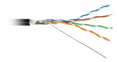 | Кабель витая пара экранированная (FTP), категория 5e, 4 пары, одножильный (solid), экран - фольга, для внешней прокладки (+60°C – -40°C) |