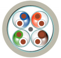 Кабель состоит из 4-х индивидуально экранированных алюминиевой фольгой витых пар, общий экран - алюминиевая фольга, внешняя оболочка FR-PVC CMR.