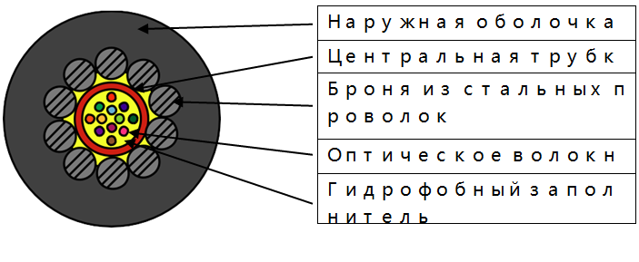 Количество оптических волокон в кабеле – от 2-х до 144-х в кабелях с центральной трубкой — от 2 до 12. В кабелях применяются различные типы одномодовых оптических волокон.