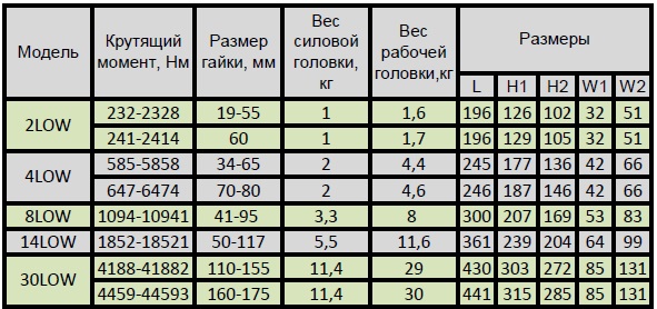 Серия LOW – профессиональные гидравлические динамометрические ключи с низким профилем. В сравнении с гидравлическими динамометрическими ключами с квадратным хвостовиком эта серия предназначена для работы с гайками, и их конструкция идеально подходит для работы в узких местах. Серия LOW предназначена для гаек с размерами от S19 до S175. Если приходится работать с другими размерами, то можно заменить шестигранную кассету, т.к. она сменная, или воспользоваться уменьшающим переходником. ЗАО «Русский Промышленный Инструмент» оказывает гарантийное обслуживание, может обеспечивать бесперебойные поставки