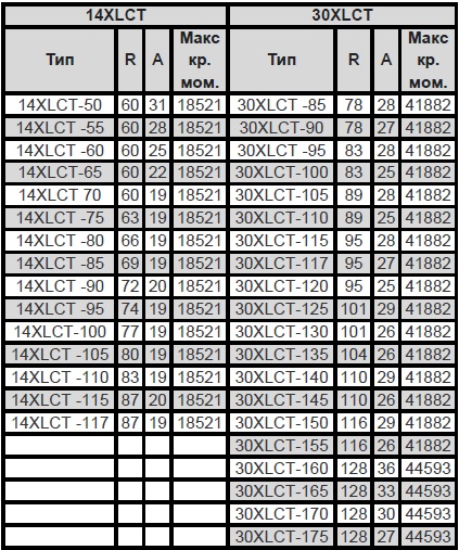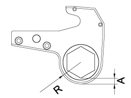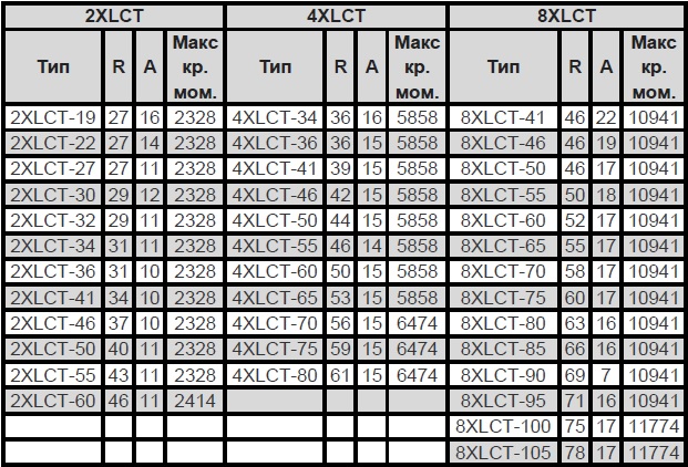 Для каждой силовой головки модели серии XLCT есть полный набор шестигранных кассет, которые подходят для большинства болтов в пределах диапазона крутящих моментов. При выборе подходящей шестигранной кассеты удостоверьтесь, что расстояние между болтом и частью оборудования больше расстояния «А». Между болтами тоже должно быть достаточно пространства. Обратите внимание на размеры «А» и «R», которые приведены в таблице.