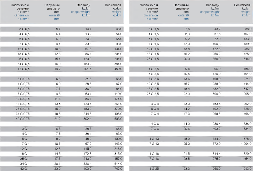 до 0,75 mm2 2.000 V; от 1 mm2 3.000 V |