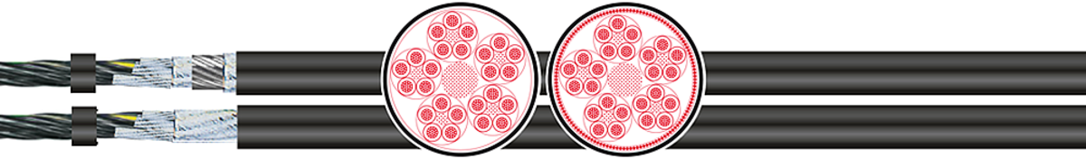 | Общая скрутка | ≤ 11 жилы скручены в слои, ≥ 12 жиры скручены в пучки, каждый элемент в спец скользящей PTFE-обмотке |