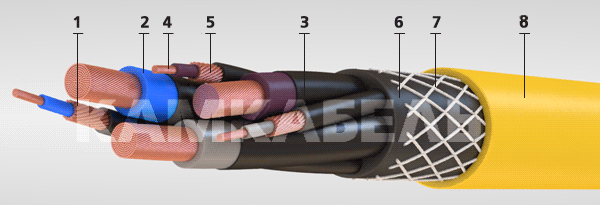 Наружная оболочка кабелей по требованию клиента может быть выполнена в жёлтом или оранжевом цвете.