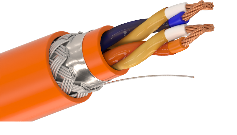 Кабель гибкий, с многопроволочными медными жилами, огнестойкий, с обмоткой жил полиимидной пленкой в витой паре, с поясной изоляцией, с общим экраном из ламинированной алюминиевой фольги с контактным проводником, с дополнительной оплеткой из медной луженой проволоки, с оболочкой из полимерных материалов. Конструкция кабеля: Жилы: многопроволочные медные. Номинальный диаметр токопроводящих жил кабелей, мм: 0,78; 0,90; 1,10; 1,20; 1,50; 2,00 Изоляция: огнестойкая кремнийорганическая резина. Обмотка жил: пары с полиимидной пленкой скручены в сердечник с числом пар до 37 Поясная изоляция: FRLS – ПВХ пластикат пониженной пожароопасности, с низким дымо- и газовыделением; FRHF – полимерная композиция, не содержащая галогенов; FRLSLTx – низкотоксичный ПВХ пластикат пониженной пожароопасности, с низким дымо- и газовыделением. Экран: общий из ламинированной алюминиевой фольги с контактным проводником и оплеткой из медной луженой проволоки. Оболочка: FRLS – ПВХ пластикат пониженной пожароопасности, с низким дымо- и газовыделением, оранжевого цвета; FRHF – полимерная композиция, не содержащая галогенов, оранжевого или черного цвета; FRLSLTx – низкотоксичный ПВХ пластикат пониженной пожароопасности, с низким дымо- и газовыделением, оранжевого цвета. Модификации: КИМ-СБГнг(А)-FRLS – с огнестойкой изоляцией, с оболочкой из полимерных материалов пониженной пожароопасности, с пониженным дымо- и газовыделением, не распространяющий горение при групповой прокладке по категории А, огнестойкий. КИМ-СБГнг(А)-FRHF – с огнестойкой изоляцией, с оболочкой из полимерных компаундов, не содержащих галогенов, не распространяющий горение при групповой прокладке по категории А, не выделяющий коррозионно-активных газообразных продуктов при горении и тлении, огнестойкий. КИМ-СБГнг(А)-FRLSLTx – с огнестойкой изоляцией, с оболочкой из полимерных материалов пониженной пожароопасности, с пониженным дымо- и газовыделением, с низкой токсичностью продуктов горения, не распространяющий горение при групповой прокладке по категории А, огнестойкий. Примечание: Конструктивные модификации и дополнительные индексы: в холодостойком исполнении, индекс «ХЛ» с повышенной стойкостью к воздействию минерального масла и бензина, индекс «МС» стойкий к солнечным излучениям (УФ) и атмосферным осадкам (с оболочкой черного цвета); гибкие кабели применяются для прокладки в труднодоступных местах с малым радиусом изгиба. Класс пожарной опасности: В соответствии с ГОСТ 31565-2012 КИМ-СБГнг(А)-FRLS – П1б.1.2.2.2 КИМ-СБГнг(А)-FRHF – П1б.1.1.2.1 КИМ-СБГнг(А)-FRLSLTx – П1б.1.2.1.2 Нераспространение горения при групповой прокладке (категория А) Огнестойкость 180 минут Температура окружающей среды при эксплуатации кабеля: FRLS, FRLSLTx монтаж: от -10°C до +50°C эксплуатация: от -50°C до +70°C FRHF монтаж: от -30°C до +60°C эксплуатация: от -60°C до +90°C Минимальный радиус изгиба: 8×Dн, где Dн — наружный размер кабеля Срок службы, не менее: FRLS, FRLSLTx 30 лет FRHF 40 лет Электрические параметры Таблица 1. Диаметр токопроводящей жилы, мм. 0,78 0,90 1,10 1,20 1,50 2,00 Сопротивление жилы постоянному току при 20°С, не более, Ом/км 56,6 43,0 26,2 25,5 15,1 8,6 Сопротивление изоляции жил при 20°С, не менее, МОм*км 100 Электрическая емкость пары, не более, нФ/км 57 61 67 69 77 85 Коэффициент затуxания при частоте 1 кГц при 20°С, не более, дБ/км 5,72 5,50 4,95 4,95 4,51 4,29 Рабочее напряжение, не более, В. 300 Пример записи условного обозначе