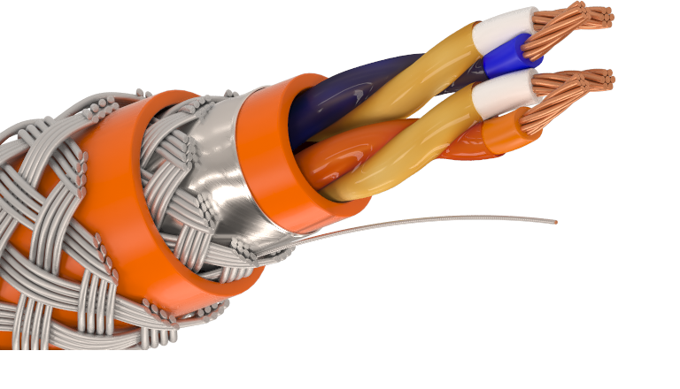 Кабель гибкий, с многопроволочными медными жилами, огнестойкий, с обмоткой жил полиимидной пленкой в витой паре, с поясной изоляцией, с общим экраном из ламинированной алюминиевой фольги с контактным проводником, с дополнительной оплеткой из медной луженой проволоки, с оболочкой из полимерных материалов, с броней из стальных оцинкованных проволок. Конструкция кабеля: Жилы: многопроволочные медные. Номинальный диаметр токопроводящих жил кабелей, мм: 0,78; 0,90; 1,10; 1,20; 1,50; 2,00 Изоляция: огнестойкая кремнийорганическая резина. Обмотка жил: пары с полиимидной пленкой скручены в сердечник с числом пар до 37 Поясная изоляция: FRLS – ПВХ пластикат пониженной пожароопасности, с низким дымо- и газовыделением; FRHF – полимерная композиция, не содержащая галогенов; FRLSLTx – низкотоксичный ПВХ пластикат пониженной пожароопасности, с низким дымо- и газовыделением. Экран: общий из ламинированной алюминиевой фольги с контактным проводником и оплеткой из медной луженой проволоки. Оболочка: FRLS – ПВХ пластикат пониженной пожароопасности, с низким дымо- и газовыделением, оранжевого цвета; FRHF – полимерная композиция, не содержащая галогенов, оранжевого или черного цвета; FRLSLTx – низкотоксичный ПВХ пластикат пониженной пожароопасности, с низким дымо- и газовыделением, оранжевого цвета. Броня: из стальных оцинкованных проволок. Модификации: КИМ-СБГКГнг(А)-FRLS – с огнестойкой изоляцией, с оболочкой из полимерных материалов пониженной пожароопасности, с пониженным дымо- и газовыделением, не распространяющий горение при групповой прокладке по категории А, огнестойкий. КИМ-СБГКГнг(А)-FRHF – с огнестойкой изоляцией, с оболочкой из полимерных компаундов, не содержащих галогенов, не распространяющий горение при групповой прокладке по категории А, не выделяющий коррозионно-активных газообразных продуктов при горении и тлении, огнестойкий. КИМ-СБГКГнг(А)-FRLSLTx – с огнестойкой изоляцией, с оболочкой из полимерных материалов пониженной пожароопасности, с пониженным дымо- и газовыделением, с низкой токсичностью продуктов горения, не распространяющий горение при групповой прокладке по категории А, огнестойкий. Примечание: Конструктивные модификации и дополнительные индексы: в холодостойком исполнении, индекс «ХЛ» с повышенной стойкостью к воздействию минерального масла и бензина, индекс «МС» стойкий к солнечным излучениям (УФ) и атмосферным осадкам (с оболочкой черного цвета); бронированные кабели защищены от внешних механических воздействий, в том числе причиняемых грызунами; гибкие кабели применяются для прокладки в труднодоступных местах с малым радиусом изгиба. Класс пожарной опасности: В соответствии с ГОСТ 31565-2012 КИМ-СБГКГнг(А)-FRLS – П1б.1.2.2.2 КИМ-СБГКГнг(А)-FRHF – П1б.1.1.2.1 КИМ-СБГКГнг(А)-FRLSLTx – П1б.1.2.1.2 Нераспространение горения при групповой прокладке (категория А) Огнестойкость 180 минут Температура окружающей среды при эксплуатации кабеля: FRLS, FRLSLTx монтаж: от -10°C до +50°C эксплуатация: от -50°C до +70°C FRHF монтаж: от -30°C до +60°C эксплуатация: от -60°C до +90°C Минимальный радиус изгиба: 10×Dн, где Dн — наружный размер кабеля Срок службы, не менее: FRLS, FRLSLTx 30 лет FRHF 40 лет Электрические параметры Таблица 1. Диаметр токопроводящей жилы, мм. 0,78 0,90 1,10 1,20 1,50 2,00 Сопротивление жилы постоянному току при 20°С, не более, Ом/км 56,6 43,0 26,2 25,5 15,1 8,6 Сопротивление изоляции жил при 20°С, не менее, МОм*