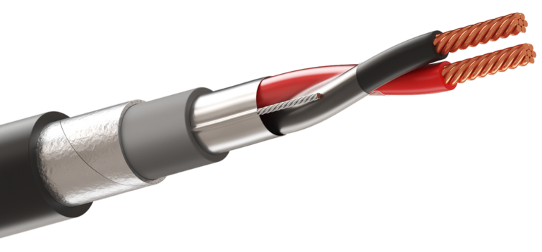 Технические характеристики (краткие) Класс медных токопроводящих жил (по ГОСТ 22483): однопроволочные – 1 класс, многопроволочные «мж» – 3 или 4 класс, кабелей повышенной гибкости «Г» – 5 класс Номинальное сечение токопроводящей жилы: 0,12 мм²; 0,20 мм²; 0,35 мм²; 0,5 мм²; 0,75 мм²; 1,00 мм²; 1,5 мм²; 2,5 мм² Токопроводящие жилы скручены в пары с целью снижения влияния электромагнитных помех. Диапазон применения от –70°С до +250°C Минимальная температура эксплуатации кабелей: –70°С кабели исполнения «ЭХЛ» –60°С кабели исполнения «ХЛ» –50°С кабели обычного исполнения Максимальная температура эксплуатации кабелей: +250°С оболочка и изоляция из высокотемпературной композиции «Y-250» +220°С оболочка и изоляция из фторопласта «Ф» +150°С оболочка и изоляция из термопластичного эластомера повышенной теплостойкости «Т-150» +120°С оболочка и изоляция из термопластичного эластомера «Т» или полиуретана «У» +75°С все остальные кабели Минимальная температура монтажа, не ниже: не ниже минус (20±2) °С – с индексом нг(А)-LS, нг(А)-LSLTx не ниже минус (35±2) °С – с обозначением «ХЛ» не ниже минус (15±2) °С – для остальных типов кабелей Климатическое исполнение В, категория размещения 1-5 (по ГОСТ 15150). Возможно применение во всех макроклиматических районах, включая тропики. Кабели в исполнении «з» – для применения во взрывоопасных зонах – имеют круглую форму и подложку (специальное заполнение), полученную методом экструзии, препятствующую свободному распространению газов под оболочкой. Сопротивление жил постоянному току соответствует ГОСТ 22483 Номинальное напряжение: до ≈380В частотой до 125 кГц Электрическое сопротивление изоляции при температуре t = +20°C, не менее: ПВХ, кремнийорганическая резина, полиуретан, термопластичный эластомер – 100 МОм•км полимерная композиция, не содержащая галогенов – 12 МОм•км высокотемпературная композиция, фторопласт – 250 МОм•км Испытание напряжением в течение 1 мин: между жилами ≈2500В 50Гц между всеми жилами и экраном ≈3000В 50Гц Кабели огнестойкие, сохраняют работоспособность в условиях пожара не менее 180 минут (ПО1 по ГОСТ 31565-2012). Огнестойкость достигается применением слюдосодержащих лент или кремнийорганической резины «Р». Кабели с низкой токсичностью продуктов горения «LTx» – самые пожаробезопасные Значение радиуса изгиба (D – наружный диаметр кабеля): 6D – для небронированных кабелей 12D – для бронированных кабелей