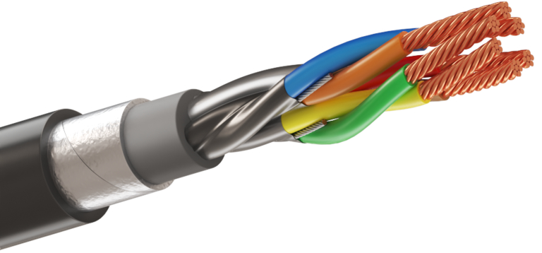 Технические характеристики (краткие) Класс медных токопроводящих жил (по ГОСТ 22483): однопроволочные – 1 класс, многопроволочные «мж» – 3 или 4 класс, кабелей повышенной гибкости «Г» – 5 класс Номинальное сечение токопроводящей жилы: 0,12 мм²; 0,20 мм²; 0,35 мм²; 0,5 мм²; 0,75 мм²; 1,00 мм²; 1,5 мм²; 2,5 мм² Токопроводящие жилы скручены в пары с целью снижения влияния электромагнитных помех. Диапазон применения от –70°С до +250°C Минимальная температура эксплуатации кабелей: –70°С кабели исполнения «ЭХЛ» –60°С кабели исполнения «ХЛ» –50°С кабели обычного исполнения Максимальная температура эксплуатации кабелей: +250°С оболочка и изоляция из высокотемпературной композиции «Y-250» +220°С оболочка и изоляция из фторопласта «Ф» +150°С оболочка и изоляция из термопластичного эластомера повышенной теплостойкости «Т-150» +120°С оболочка и изоляция из термопластичного эластомера «Т» или полиуретана «У» +75°С все остальные кабели Минимальная температура монтажа, не ниже: не ниже минус (20±2) °С – с индексом нг(А)-LS, нг(А)-LSLTx не ниже минус (35±2) °С – с обозначением «ХЛ» не ниже минус (15±2) °С – для остальных типов кабелей Климатическое исполнение В, категория размещения 1-5 (по ГОСТ 15150). Возможно применение во всех макроклиматических районах, включая тропики. Кабели в исполнении «з» – для применения во взрывоопасных зонах – имеют круглую форму и подложку (специальное заполнение), полученную методом экструзии, препятствующую свободному распространению газов под оболочкой. Сопротивление жил постоянному току соответствует ГОСТ 22483 Номинальное напряжение: до ≈380В частотой до 125 кГц Электрическое сопротивление изоляции при температуре t = +20°C, не менее: ПВХ, кремнийорганическая резина, полиуретан, термопластичный эластомер – 100 МОм•км полимерная композиция, не содержащая галогенов – 12 МОм•км высокотемпературная композиция, фторопласт – 250 МОм•км Испытание напряжением в течение 1 мин: между жилами ≈2500В 50Гц между всеми жилами и экраном ≈3000В 50Гц Кабели огнестойкие, сохраняют работоспособность в условиях пожара не менее 180 минут (ПО1 по ГОСТ 31565-2012). Огнестойкость достигается применением слюдосодержащих лент или кремнийорганической резины «Р». Кабели с низкой токсичностью продуктов горения «LTx» – самые пожаробезопасные Значение радиуса изгиба (D – наружный диаметр кабеля): 6D – для небронированных кабелей 12D – для бронированных кабелей