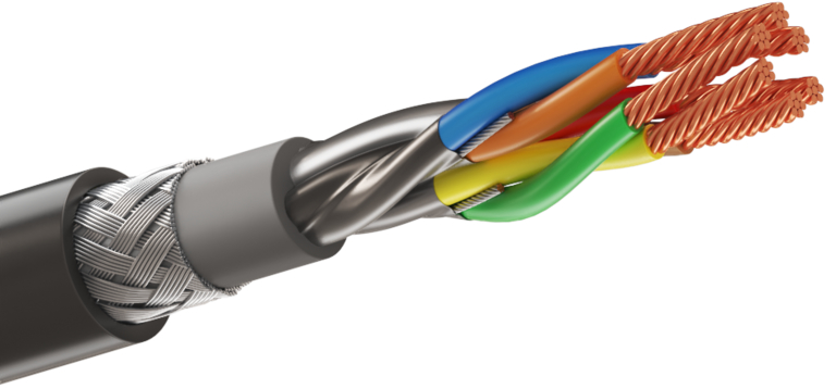Технические характеристики (краткие) Класс медных токопроводящих жил (по ГОСТ 22483): однопроволочные – 1 класс, многопроволочные «мж» – 3 или 4 класс, кабелей повышенной гибкости «Г» – 5 класс Номинальное сечение токопроводящей жилы: 0,12 мм²; 0,20 мм²; 0,35 мм²; 0,5 мм²; 0,75 мм²; 1,00 мм²; 1,5 мм²; 2,5 мм² Токопроводящие жилы скручены в пары с целью снижения влияния электромагнитных помех. Диапазон применения от –70°С до +250°C Минимальная температура эксплуатации кабелей: –70°С кабели исполнения «ЭХЛ» –60°С кабели исполнения «ХЛ» –50°С кабели обычного исполнения Максимальная температура эксплуатации кабелей: +250°С оболочка и изоляция из высокотемпературной композиции «Y-250» +220°С оболочка и изоляция из фторопласта «Ф» +150°С оболочка и изоляция из термопластичного эластомера повышенной теплостойкости «Т-150» +120°С оболочка и изоляция из термопластичного эластомера «Т» или полиуретана «У» +75°С все остальные кабели Минимальная температура монтажа, не ниже: не ниже минус (20±2) °С – с индексом нг(А)-LS, нг(А)-LSLTx не ниже минус (35±2) °С – с обозначением «ХЛ» не ниже минус (15±2) °С – для остальных типов кабелей Климатическое исполнение В, категория размещения 1-5 (по ГОСТ 15150). Возможно применение во всех макроклиматических районах, включая тропики. Кабели в исполнении «з» – для применения во взрывоопасных зонах – имеют круглую форму и подложку (специальное заполнение), полученную методом экструзии, препятствующую свободному распространению газов под оболочкой. Сопротивление жил постоянному току соответствует ГОСТ 22483 Номинальное напряжение: до ≈380В частотой до 125 кГц Электрическое сопротивление изоляции при температуре t = +20°C, не менее: ПВХ, кремнийорганическая резина, полиуретан, термопластичный эластомер – 100 МОм•км полимерная композиция, не содержащая галогенов – 12 МОм•км высокотемпературная композиция, фторопласт – 250 МОм•км Испытание напряжением в течение 1 мин: между жилами ≈2500В 50Гц между всеми жилами и экраном ≈3000В 50Гц Кабели огнестойкие, сохраняют работоспособность в условиях пожара не менее 180 минут (ПО1 по ГОСТ 31565-2012). Огнестойкость достигается применением слюдосодержащих лент или кремнийорганической резины «Р». Кабели с низкой токсичностью продуктов горения «LTx» – самые пожаробезопасные Значение радиуса изгиба (D – наружный диаметр кабеля): 6D – для небронированных кабелей 12D – для бронированных кабелей