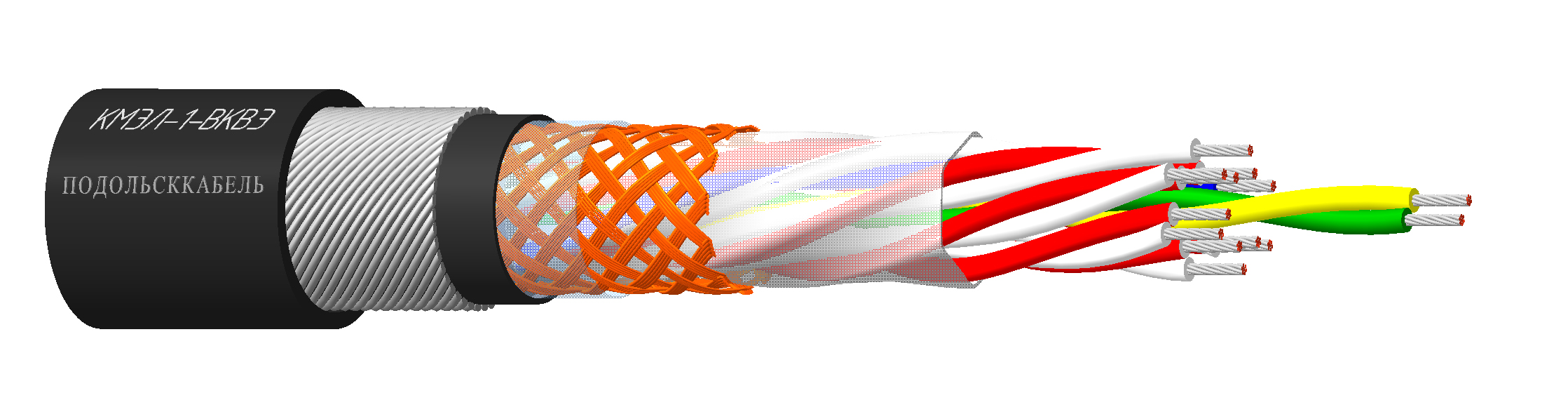 Кабели с общим экраном, бронированные стальной оцинкованной проволокой. Кабели монтажные электрические КМЭЛ, предназначены для межприборного монтажа электрических устройств, работающих при номинальном напряжении до 500 В включительно частотой до 400 Гц или постоянном напряжении до 750 В включительно. «М» - медная токопроводящая жила, «без обозначения» - медная луженая токопроводящая жила, «В» - изоляция (и (или) оболочка) из поливинилхлориднго пластиката,«П» - полимерная композиция, не содержащая галогенов,«Пс» - полиэтилен сшитый,«К»- с броней из стальных оцинкованных проволок, «Э» - экран в виде оплетки из медных проволок.