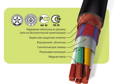 Оболочка из маслостойкой резины, не распространяющей горение, пониженной горючести (нг) из безгалогенной композиции (нг-HF), с частично экранированными жилами |