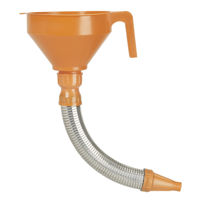 Еще одна модификация популярной пластиковой воронки Pressol емкостью 1,2 литра, в версии с гибким сливом.