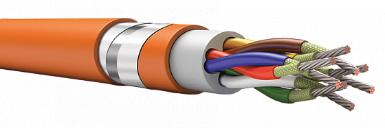 Проводник: многопроволочные медные луженые (с индексом Л) жилы сечением от 0,5 до 6,0 мм2, на проводник наложен огнестойкий барьер из двух слюдосодержащих лент.