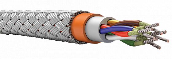 Проводник: многопроволочные медные луженые (с индексом Л) жилы сечением от 0,5 до 6,0 мм2, на проводник наложен огнестойкий барьер из двух слюдосодержащих лент.