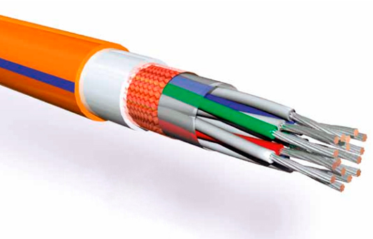 Кабель с многопроволочными токопроводящими жилами из медных луженых проволок, с изоляцией и оболочкой из полимерных материалов пониженной пожароопасности, с пониженным дымо- и газовыделением, не распространяющий горение при групповой прокладке по категории А, с общим экраном в виде оплетки или обмотки из медных проволок, без брони, с круглым поперечным сечением и подложкой под оболочкой, полученной методом экструзии, с негигроскопичными заполнителями.