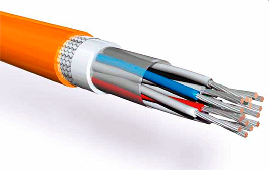 - кабель КПМПКПГнг(А)-HF- с изоляцией и оболочкой из полимерных материалов, не содержащих галогенов, не распространяющий горение при групповой прокладке по категории А и не выделяющий коррозионно-активных газообразных продуктов при горении и тлении.